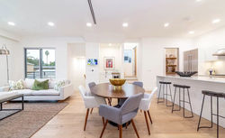 The Lexington is a 8 luxurious modern single family residences that have high end finishes such as Thermador kitchen appliances, Balthaup cabinetry, Pirnar entry door, Hansgrohe plumbing fixtures, Fleetwood sliding doors, and wide plank oak floors. The kitchen has an open concept with an oversized island, separate wet bar equipped with wine fridge and sink. The upper level features dual masters (bottom left) with suite bathroom and custom built walk-in closets.
